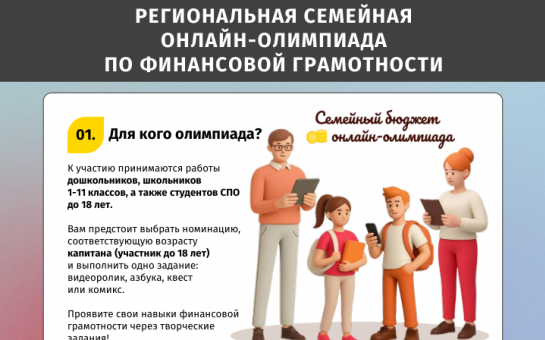 Примите участие в ежегодной региональной семейной онлайн - олимпиаде по финансовой грамотности «Финансовая грамотность в семейном бюджете»!